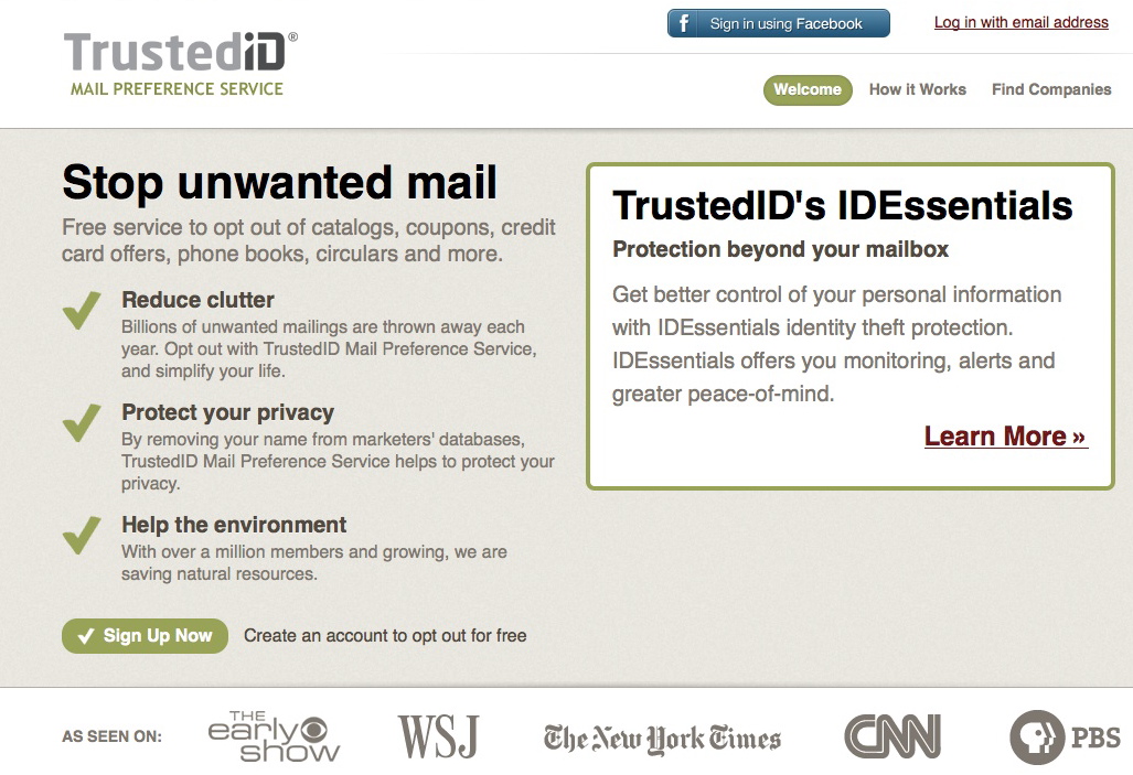 TrustedID is not the only outfit to help eliminate unwanted catalog mail. You can also register with the Direct Marketing Association for their opt-out program. And I’m sure there are others (Have you opted-out? What did you use?)