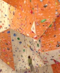 Quick lesson: in “sport climbing,” you are advancing up a rock face or a wall, with a rope attached to you. As you advance, you are clipping your rope into “draws” that you attach to bolts in the rock (if you are climbing outdoors) or that are already bolted in the wall (if you are indoors). You climb to the top of the route, clipping in as you go, and then at the top, you clip into anchors and call for a “take” (as in “take up slack”). Congratulations, you’ve “sent” your route.