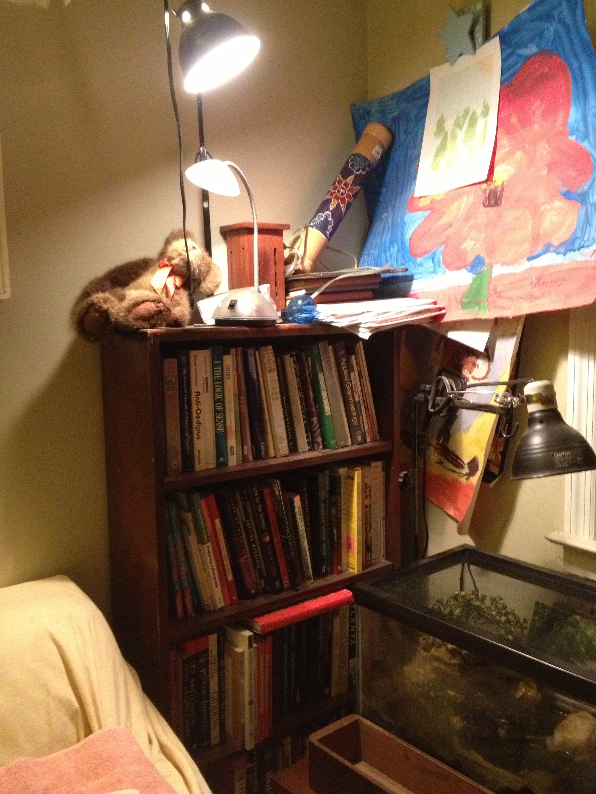 Most of what I have on this little, wooden bookshelf are work-related books: scholarship that touches upon my own work in one way, shape or form. Some of these points of contact are pretty dated. Others are areas of ongoing interest.