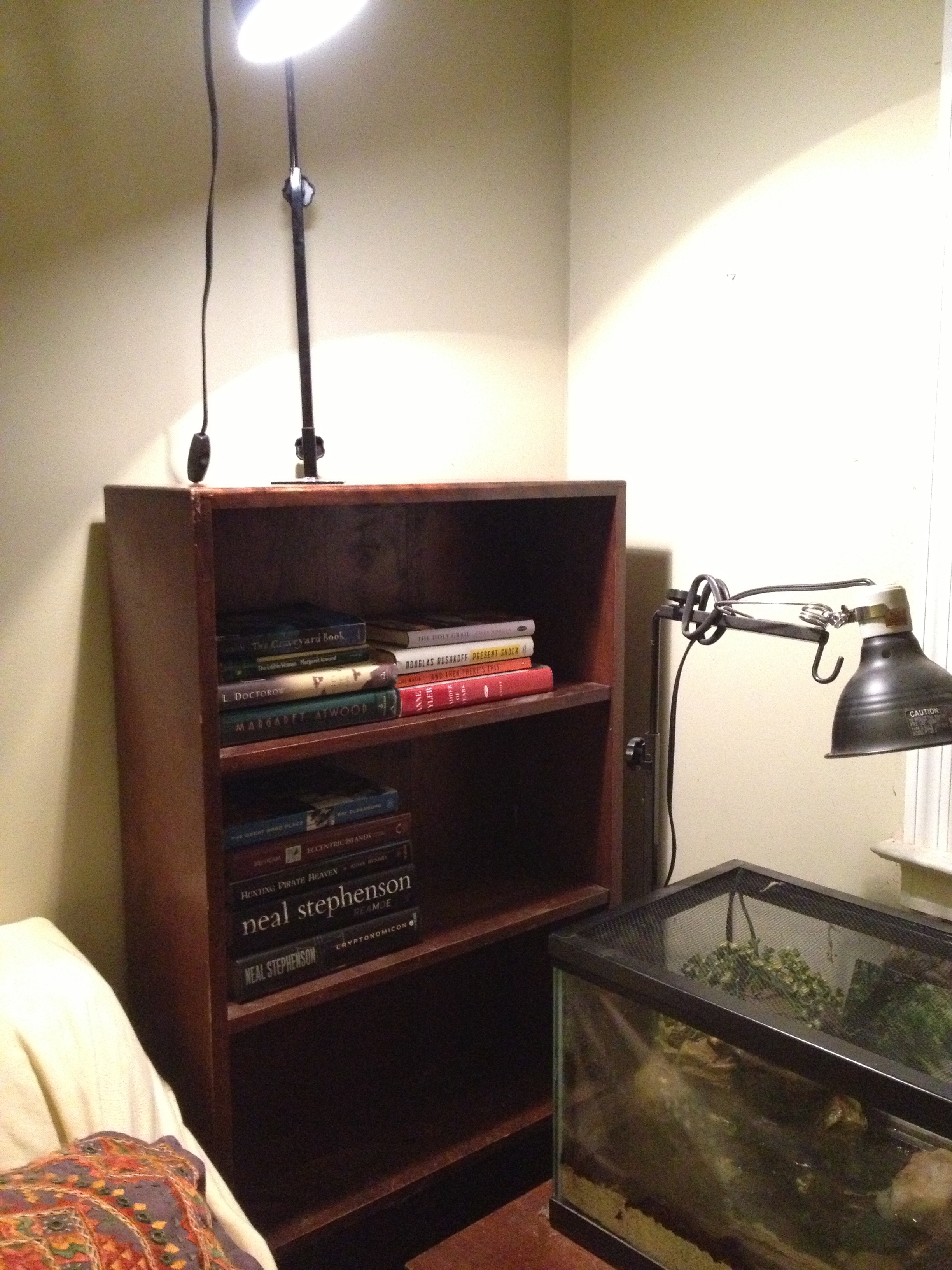 It’s small enough that it will fit well into the furnished house we are moving into. My goal–over the next day or so, to pull off of the other bookshelves around the house only those books I can imagine myself reading in the next year.