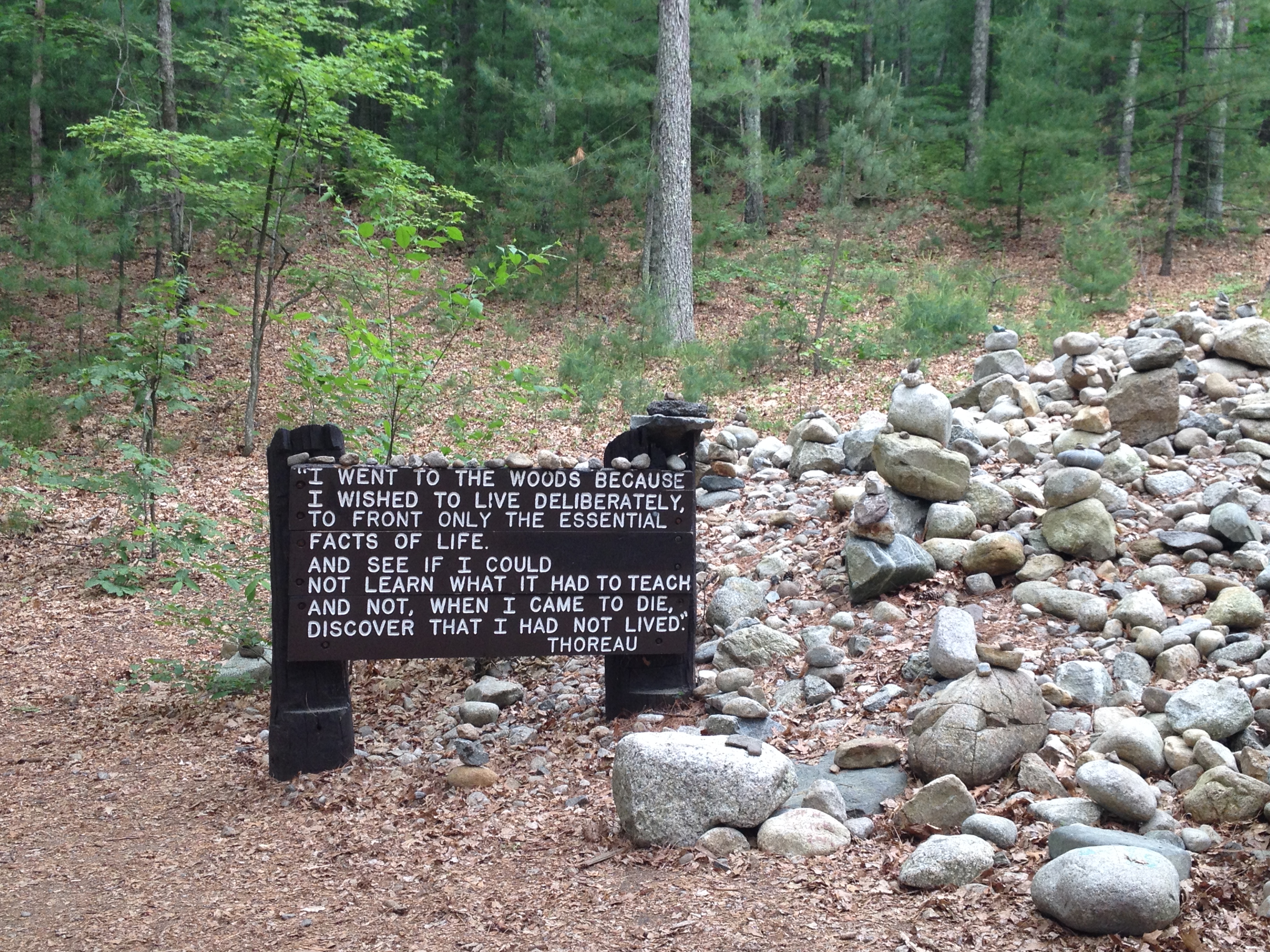 IMG_2494We took a walk around Walden Pond. It seemed like a good place to spend a couple of hours. We stopped at the site of Thoreau’s cabin, and marveled at the size of the cairn–the pile of rocks left by hundreds of pilgrims and tourists. We talked and reminisced. We planned for the possibility of him passing through North Carolina later this summer. We commemorated our friendship.