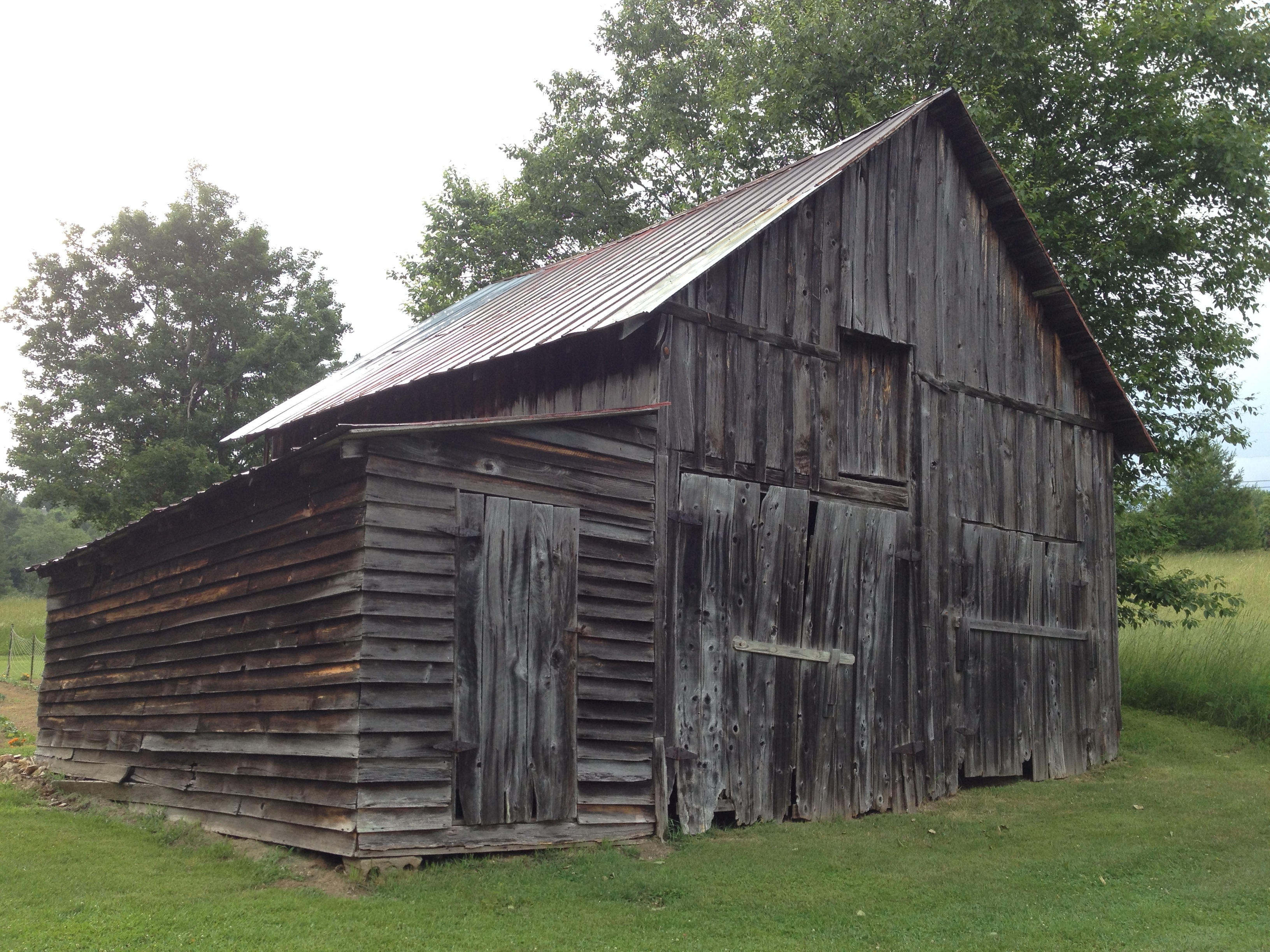 The rain started to roll in–big, thick drops falling behind a strong, cool breeze. We started walking the half mile home, then started to jog, debating whether or not running in the rain gets you more wet than walking. But the rain turned out to be a just a passing band of showers and soon tapered off, leaving us mostly dry for the remainder of our walk down the hill and along the ridge that had once all belonged to their great-great grandfather. We paused for a bit down in the field, next to the barn that has been standing there for five generations.