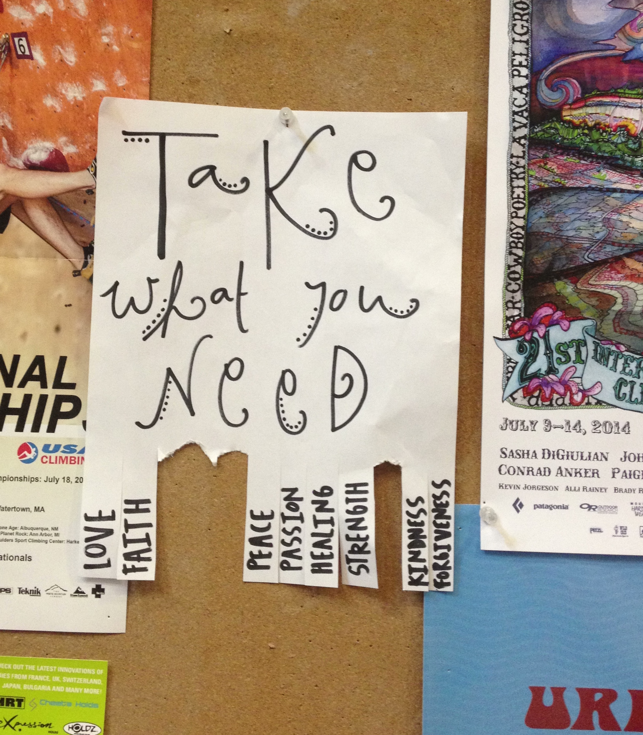 I’m in Texas today for a divisional championship with my oldest boy, the competitive climber. He is only competing in one category this season: speed. We got to the gym early and had about an hour before the check-in. I thought he would want to hang out with his team mates, many of whom had competed in the morning and were waiting for the afternoon speed session. After about fifteen minutes, though, he asked if we could leave the gym until closer to check-in time. His explanation: he didn’t want to spend the next hour staring at his speed route and running it in head head. He wanted to stay loose and relaxed right up until competition. So I obliged.